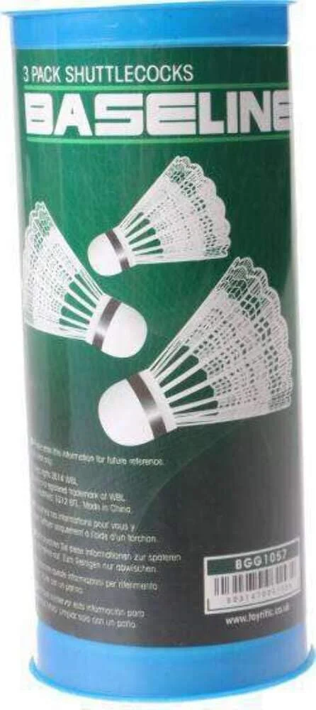 This 3 pack shuttlecock set comes in a PVC tube. 3x baseline shuttlecocks Plastic storage tube included Ideal for summer badminton fun