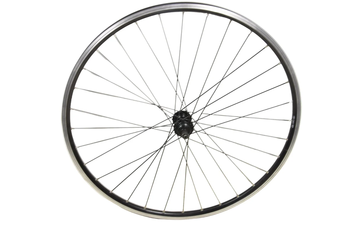 700c rear wheel with black aluminium rim and quick release hub