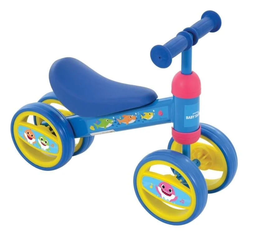 Let’s go play! Get on the move with this super cool ride-on featuring character favourites Baby Shark, Mommy Shark and Daddy Shark! Perfect for little ones finding their feet, this ride-on is not only designed for comfort with it’s moulded seat and soft handlebar grips, but safety also with double rear wheel design provides extra anti-tip and stability and study steel frame. The easy grip handlebar with responsive movement makes this product perfect for beginner riders and helps the development of coordination and core balance.
