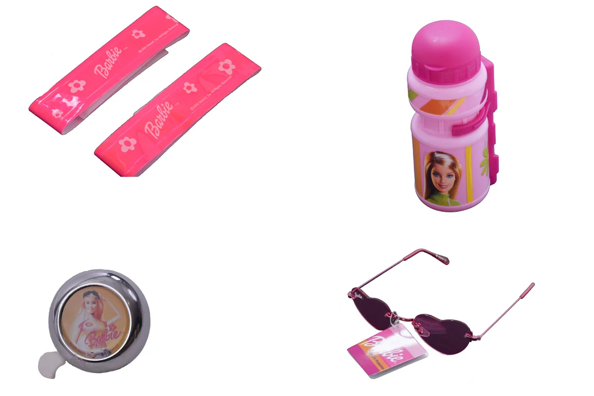 Barbie Doll Girlie Bike Accessory Ideal Gift Pack Bell, Armbands, Sunglasses & Bottle Pink
