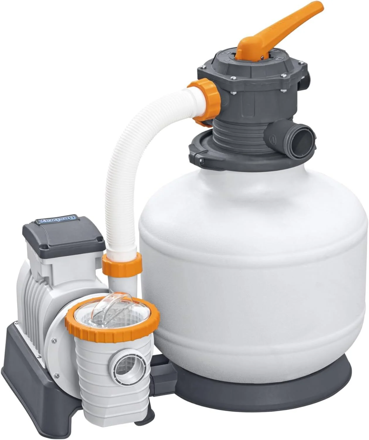 - 1 Sand Filter Set and 1 ChemConnect Dispenser (sand not included, required sand size: 20 silica sand, 0.45-0.85mm approximately 36kg. Also works with Bestway’s Polysphere Filtration Balls). Sand Filter Dimensions: length: 62cm / 24.41 inch, width: 48.5 / 19.09 inch, height: 67cm / 26.38 inch