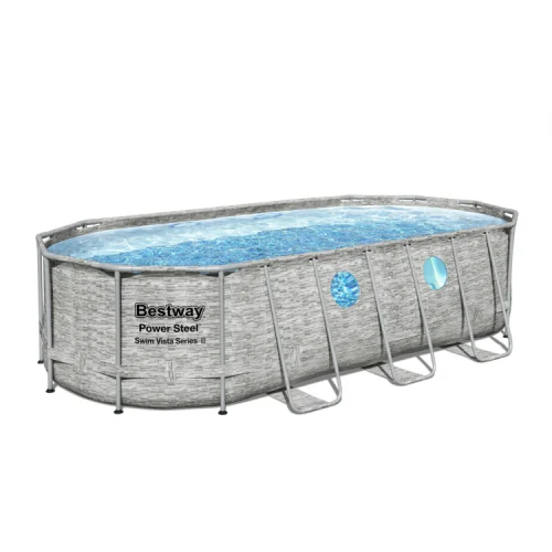 The Bestway 18ft Power Steel Swim Vista Oval Pool Set offers a truly unique swimming experience for families. With reinforced, fortified portholes built into the sides of the pool, swimmers can wave and make silly faces as they paddle by. These windows also allow parents to easily keep an eye on the kids as they dip through the water.