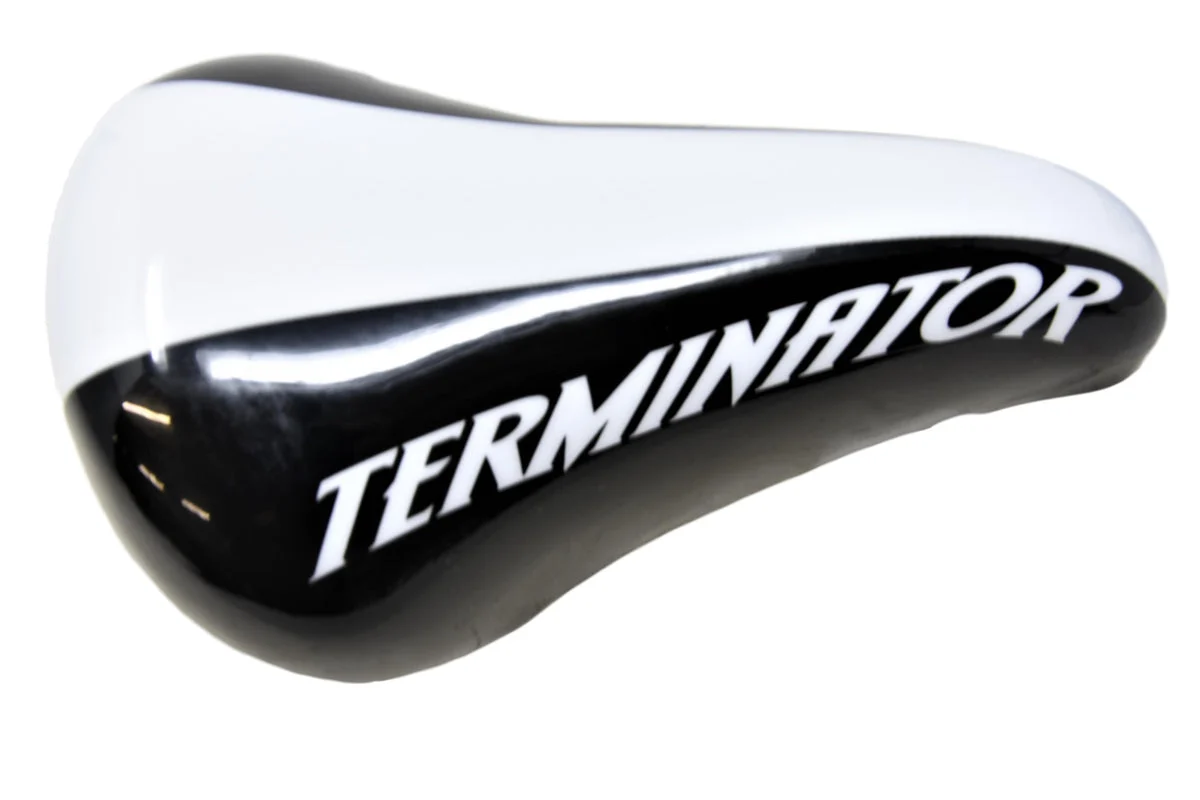 BMX Bike Seat “Terminator” Cycle Saddle, Luxury Shiny Top 2 Tone Black & White