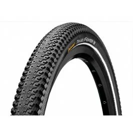 The centre, with its light tread rolls smoothly and quietly on tarmac. Off-road, the side lugs heavy tread provides the necessary grip. The Double Fighter playfully combines high speed on the road with reliable grip on off-road terrain. The use of a tough sidewall means that the tyre will be more resistant to urban debris and the service life of the tyre will also be improved.