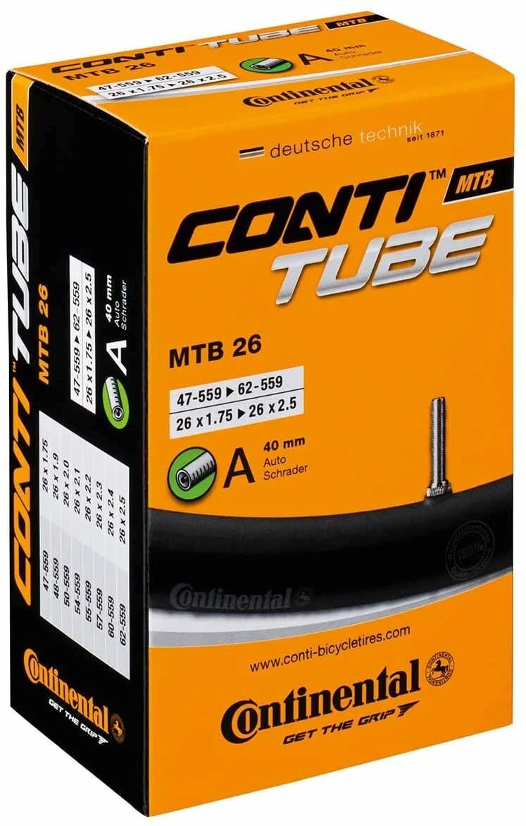 Continental‘s standard MTB tube offers the best balance between rolling resistance and puncture prevention and masters the demands of everyday life effortlessly. The MTB 26 with Schrader valve fits on 26“ bikes.