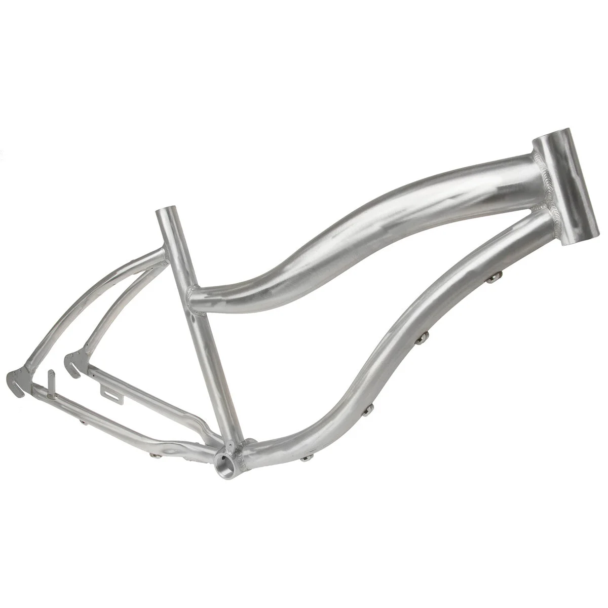 - Aluminium USA style beach cruiser frame with curved 50`s style frame tubing and easy low step for mount