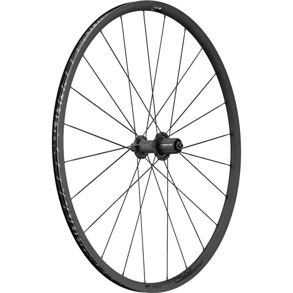 Pure stealth, the Oxic coated PR1400’s are the epitome of understated coolUnique Oxic rim surface treatment, developed just for DT Swiss gives the finest wet or dry rim braking performance ever seen on a road bike with no howling or excessive pad wearDICUT hubs give the widest possible flange spacing for cornering stiffness and provide a rock solid anchor point for the unique DT Nail Head spokes, meaning these wheels have a class leading lateral stiffness to weight ratioThis, combined with a weight of just 1435 grams a pair and peerless Oxic braking performance make the PR1400’s a brilliant companion for steep climbs and technical descentsSBWT welded rim with a wider 18 mm internal diameter (21.5 mm external) makes these suitable for 23-35c tyres and versatile performers that can turns their hand to cross or gravel riding if requiredDT’s legendarily reliable ratchet rear Freehub system makes these hubs solid under drive, lightweight and easy to serviceDT have specced a blend of their renowned Aerolite and Aero Comp spokes for the perfect balance of stiffness, comfort and low weightFor those looking to use the latest tyre tech the PR 1400’s’s come tubeless ready but can also be used with standard clinchersMaximum recommended system weight: 110 KGWhen bought as a pair they will include SwissStop BXP Blue brake pads, custom Oxic RWS skewers, rim tape and tubeless valves.Weight: Front 635g Rear 800gAxle Type: 100mm QRBrake Type: RimColour: BlackDiscipline: Road & MultisportHub Type: Quick ReleaseRim Type: ClincherWheel Diameter: 700Write A Review