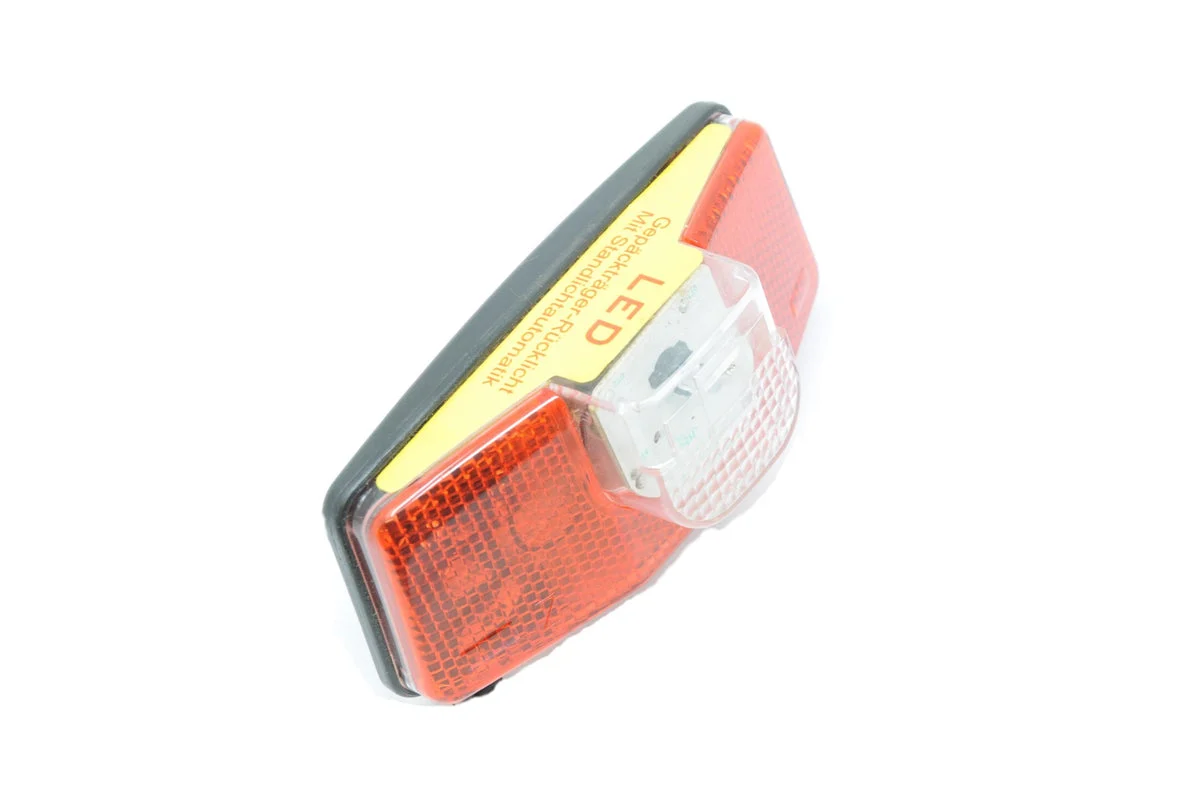 - Single red led rear carrier, pannier dynamo powered rear light with built-in standlight which means it has a stationary light that stays on for a short period once you stop