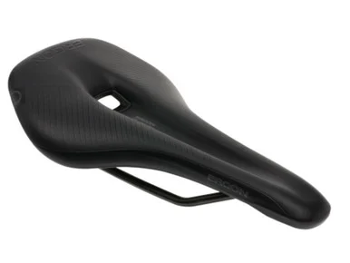 Deep Relief Channel -Eliminating unwanted pressures – The progressive relief channel, which deepens towards the rear, leads to an opening through the saddle shell. This construction combines all of the advantages of a cut-out saddle without the potential disadvantages. This design gives the saddle shell more forgiveness as well as specifically relieves perineal pressures. Too much pressure in this area often leads to discomfort and numbness in the genital area.
