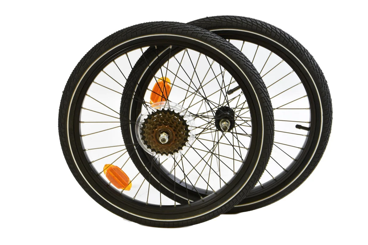 FOLDING BIKE 6 SPEED ALLOY WHEEL SET 20 X 1.75 406, 84MM FRONT WITH TYRES & TUBES