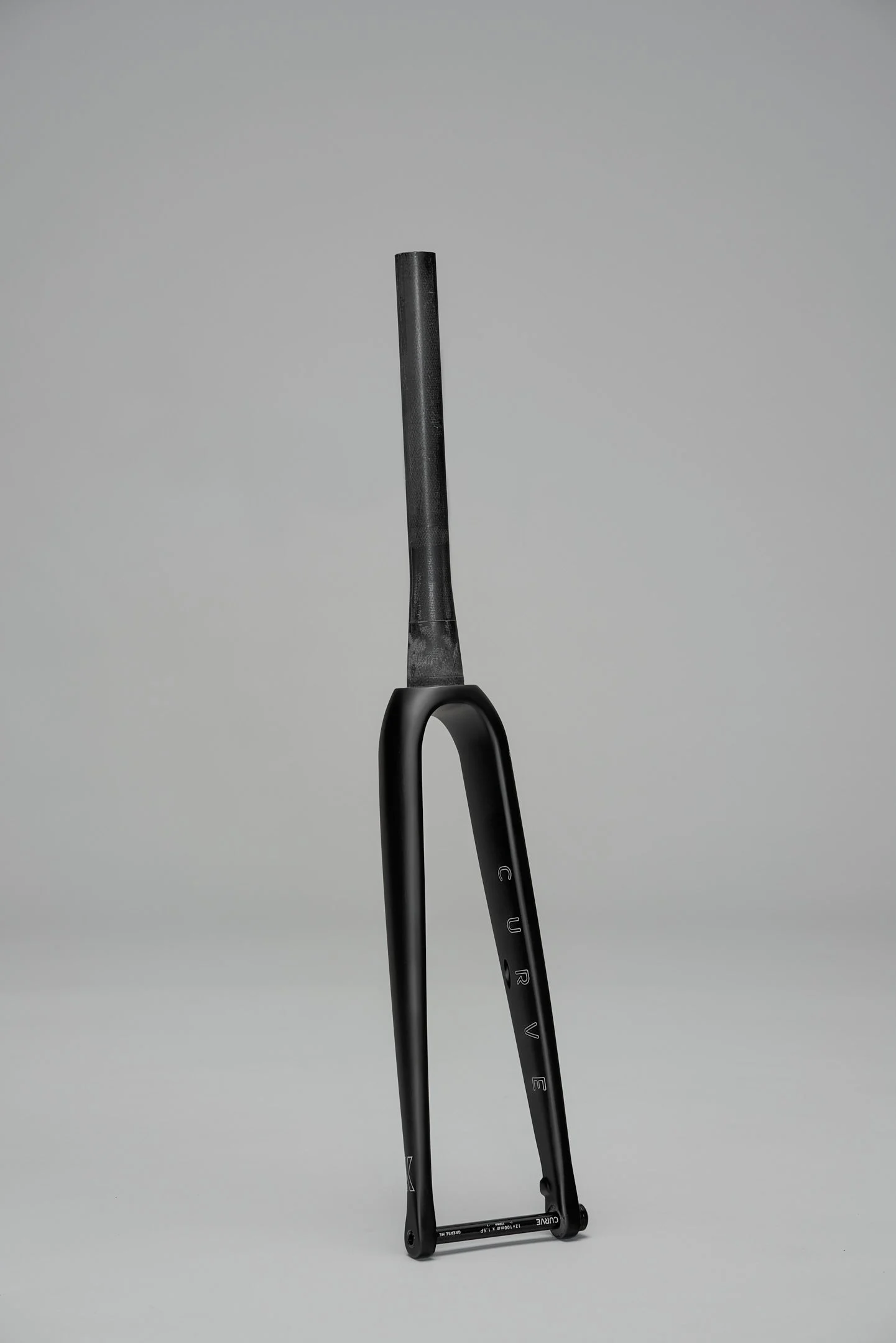 Our flat mount, carbon disc fork, with added tyre clearance is built for all road conditions. Race370 Choose Your Own AdventureOriginally titled, the Belgie Fork, the Race 370 was built to complement the Belgie V3 or Belgie Air frameset. The result is a flat mount, carbon disc fork, allowing tyre clearance of up to 33 mm both in slick road and light gravel/cyclocross tyres.The Race 370 can handle light gravel, or cobble, and has been tested heavily in ultra-endurance races such as the Trans Am, Indian Pacific Wheel Race and the Transcontinental, by some of the world’s toughest riders.It’s In The DetailsThe Race 370 comes with a matte black finish, featuring a white chevron on the outer blade, and a white Curve logo on the inner blade. The Race 370 also includes a carbon steerer expander with a printed Race Ride Seek stem cap.Fork IncludesFork:Carbon ConstructionFlat Mount DiscMatte black finish with white “chevrons” outline and white “Curve” outline decals45 mm rake 370 mm axle to crown 12 x 100 mm axle spacing 1 1/8th” – 1.5″ tapered steerer 300 mm steerer length Internal routing Weight: 415gOther:Carbon expander 12 x 100 mm front axle Stem cap: Race Ride SeekPlease Note:Important Note: Please be aware that due to the steerer length of the Ride 370 fork (300mm), when paired with Ultra frames in sizes 61 and 64 only 10mm and 0mm of spacers will fit under the stem, respectively, due to the longer headtubes (61 cm – 240 mm, 64 cm – 250 mm).If more stack is needed, an alternate fork with a longer steerer tube may be required. Please Contact Us to talk through possible options if this may affect you.