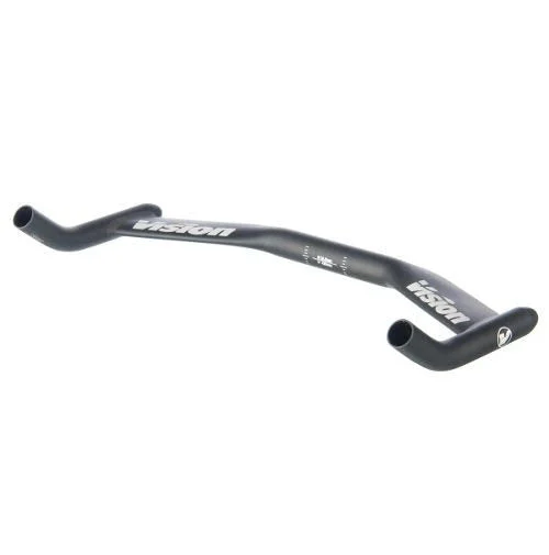Vision Alloy Base Bar is constructed from AL6066/T6 triple butted alloy and features a zero degree flat wing with a custom shape for optimized aerodynamics. To further reduce drag it uses internal cable routing, while still being compatible with most standard aero extensions. This aluminium, wing-shaped, cow-horn bar is a third of the price of a carbon equivalent, so represents a very good choice for upgrading a road bike for time trials. The 13cm central section has a constant 26mm diameter, which will accommodate any non-oversized stem and many – but not all – clip-on aerobars; check the spec on yours or try them for size on your existing bar’s central bulge.
