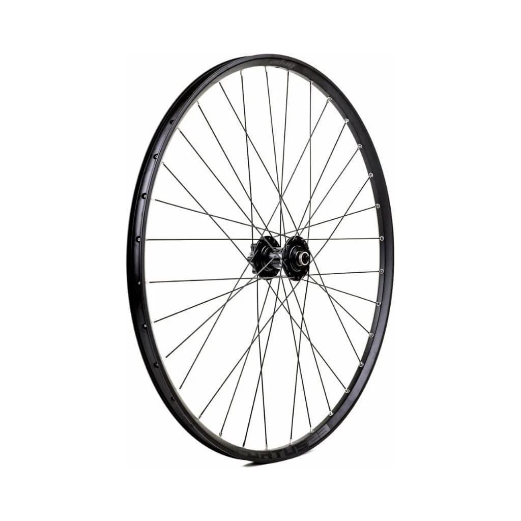 Wheels machine built and hand finished in BarnoldswickFortus 23 rim built on our new Pro 5 HubsStandard J-bend hub wheel builds available in our 6 standard coloursLarger diameter spoke flange, to build stiffer wheelStainless Steel, sealed cartridge bearingsWelded and eyeleted 6061 T6 aluminium rimTubeless compatible, tubeless tape & valve includedBlack Sapim Race Stainless Steel double butted spokes built with Silver Brass nipplesFront wheels supplied 15mm conversions onlyBoost front wheel option comes built with 110x15mm Boost specific hubInternal width: 23mmExternal width: 27.5mmProfile depth: 17mmRim ERD: 566mmRecommended tyre width: 2.0″-2.35″Spoke count: 32Rim only weight: 27.5″ – 420g Write A Review