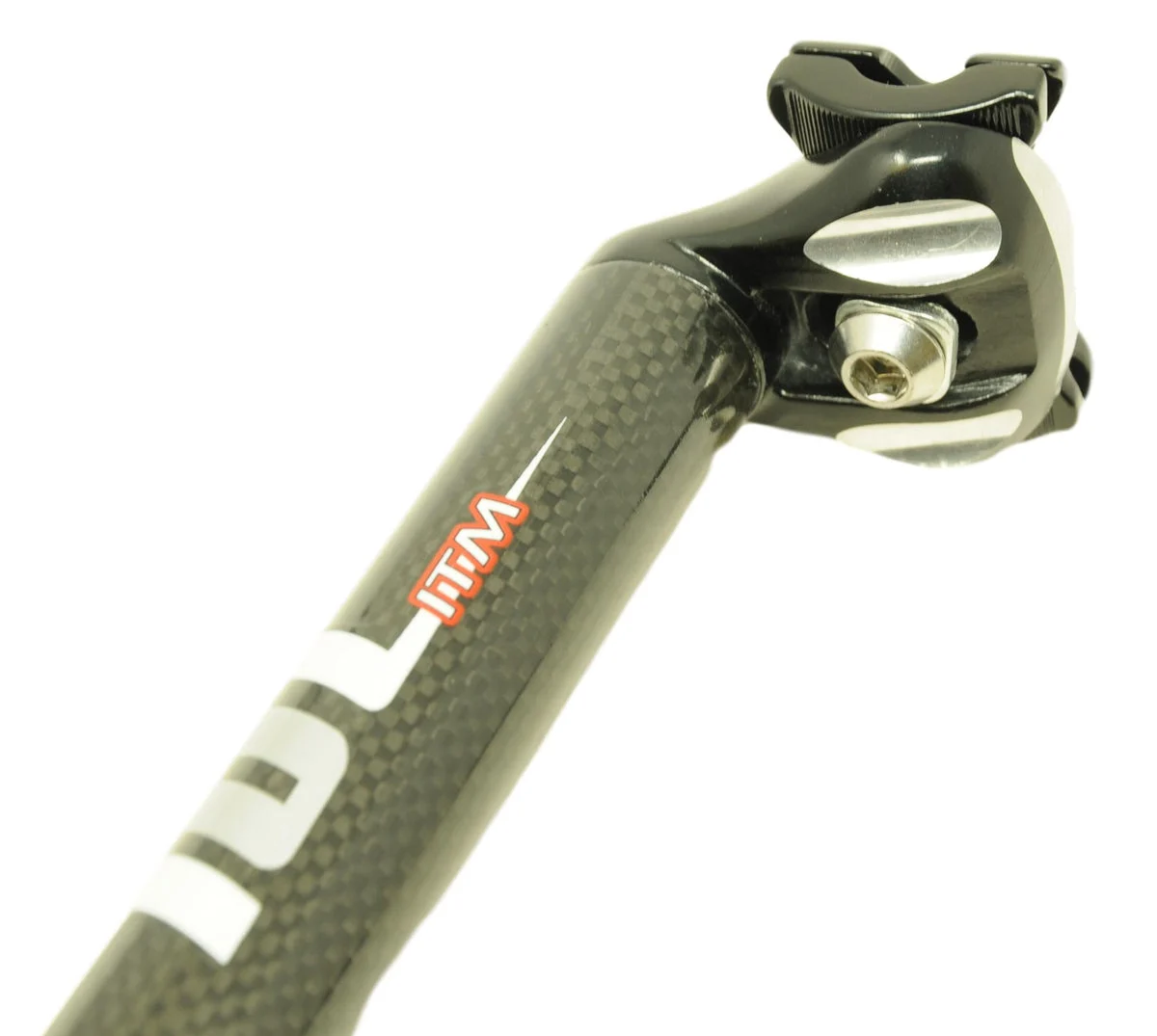 - 350mm long carbon fibre micro adjust seat post with an aluminium top clamp