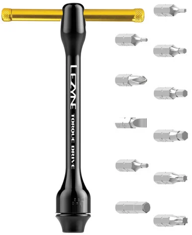 . Lezyne Torque Drive Wrench Tool Kit. T-Wrench with removable handle. Kit includes 11 x tool bits. Pre-calibrated, torsion beam-style torque tool. Built-in compact torque measurement function. Precision-made CNC machined aluminium body. Measurable from 2Nm to 10Nm. Compatible with various screw sizes. Custom-made storage case organiser. Chrome plated chrome vanadium tool bits. Integrated magnet to hold tool bits in place. No pre-set necessary. Incredibly user-friendlyTool Bits (included). Hex 2, 2.5, 3, 4, 5, 6mm. Star Shaped T10, T25, T30. Flat Head Screwdriver. Phillips-Head ScrewdriverSpecifications. Torque Capacity: 2Nm to 10Nm. Weight: 190g. Colour: Black/Nickel
