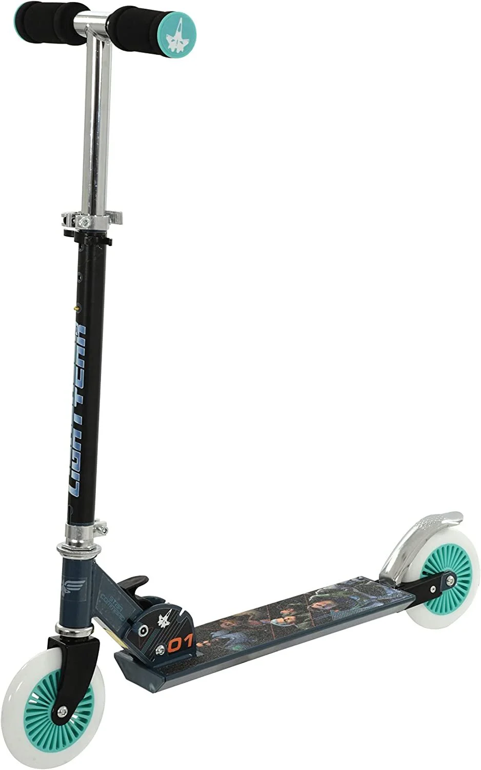 The folding in-line scooter is ideal for older riders who have mastered 3 wheels. Featuring soft touch handlebar grips, reactive rear footbrake and lick puncture proof tyres, riders are in for a fast and comfortable journey! The scooter folds and unfolds quickly and easily making it perfect for transportation and storage and is ready to ride right out of the box! The fully printed stem wrap and anti-slip footplate feature cool graphics meaning riders will look neat on the streets!