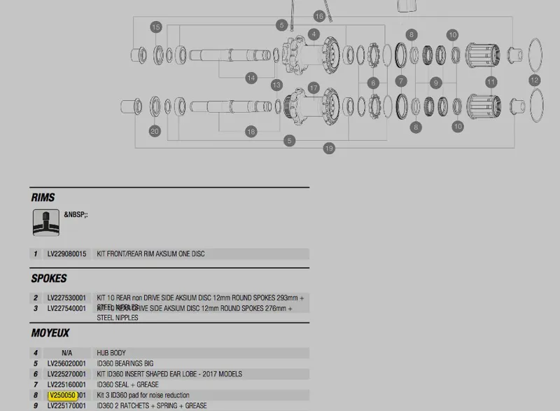Genuine Mavic hub spare part Noise Reduction Pad – no V250050 – for Mavic ID360 Instant Drive hubs