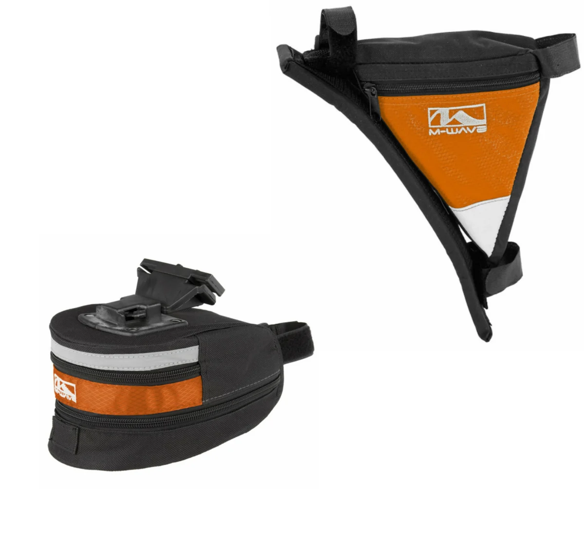 M Wave 1.3 litre capacity under the saddle mounting bag, ideal for carrying all your essential items and offering extra space when you need to carry a few more. Suitable for all types of cycling. The Quick Lock fittings attach to the seat rails & seat seat pin of your bike allowing fitting or removal of the pack in seconds. Constructed from durable 600D fabric it features YKK zip closures, elasticated mini pump holder, reflective trim and a loop for mounting an LED safety light.