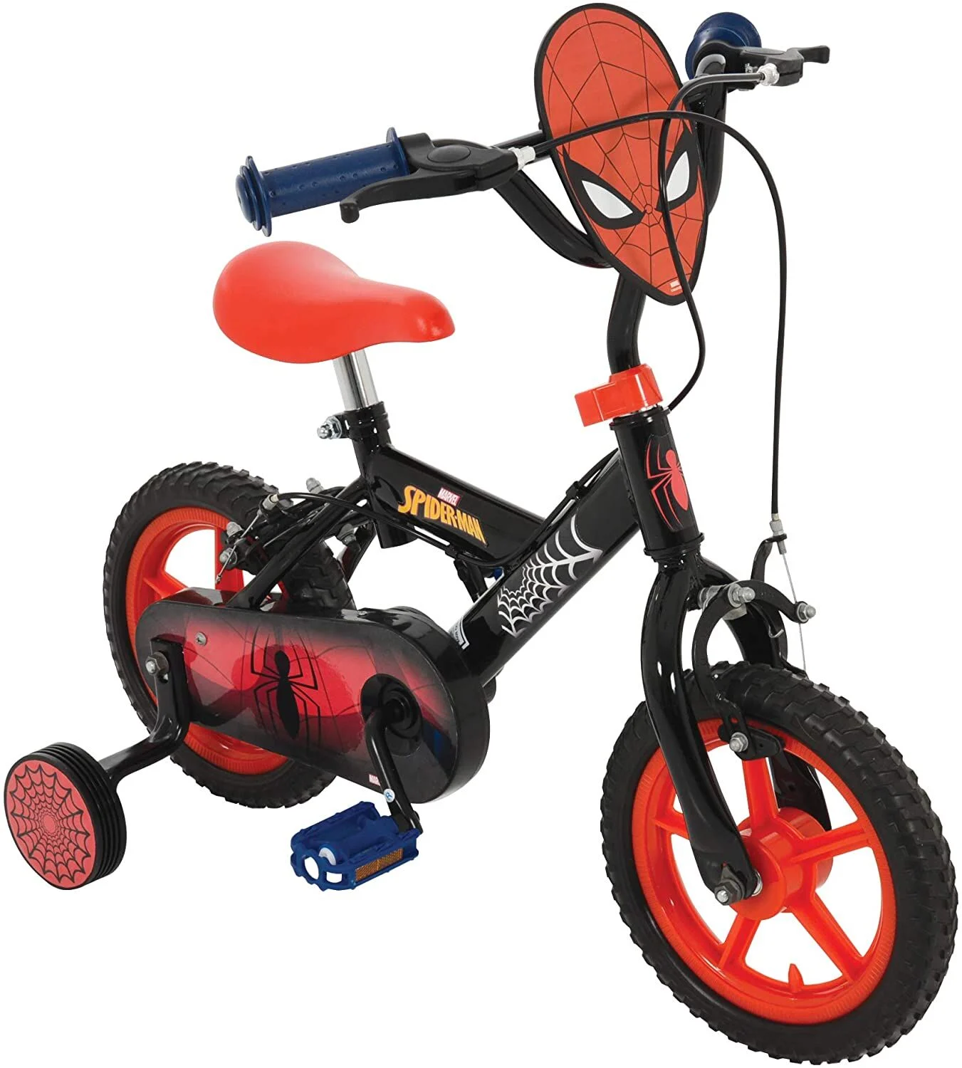 The perfect first chain driven bike for any budding Superhero, this Spiderman bike comes with 12” (30cm) wheels. This colourful bicycle features a fully enclosed chain guard to help keep clothes clean. The chain guard is printed with images of your favourite characters. The saddle features an adjustable seat height of 41 – 46cm, so will grow with your child, as they grow in confidence. Removable stabilisers are included, to help improve the rider’s balance so that they can cycle with stability and security until they’re ready to cycle unaided. Front and rear calliper brakes are equipped for the safety of the cyclist and the tyres are puncture proof with a deep thread for stability. The fixed gear makes cycling more straightforward for young riders. Comes with height adjustable handlebars, 61 – 63cm and a colourful plaque of all your favourite characters.