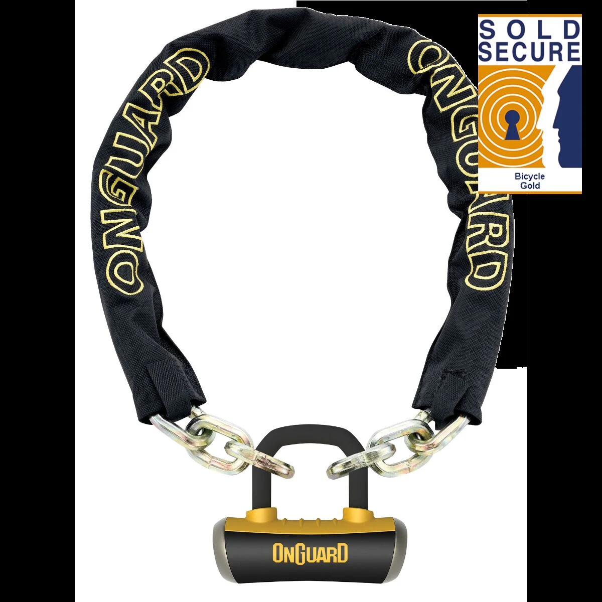 Mastiff 8019L longer 6 10mm (0.39 ) titanium reinforced hardened steel hexagonal link chain for more locking options. Hexagonal and square links present more hardened surfaces than round links making sawing and cutting virtually impossible. Titanium surface hardening vastly increase cut and saw resistance. Embroidered nylon chain covers wont crack or peel for long lasting beauty. Velcro tabs keep cover in place to help protect paint and finishes. Comprehensive selection of locks types chain lengths and link size to exactly match security needs. Chain dimensions: 180cm x 10mm Shackle diameter: 14mm Hardened steel