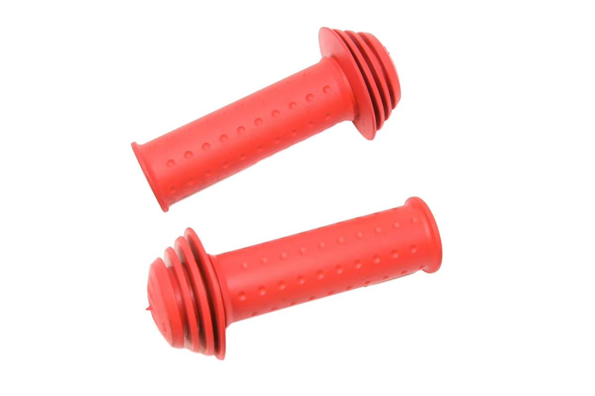 - SOFT MUSHROOM TYPE GRIPS WITH DONUT ENDS (LARGE END TO PREVENT THE HAND FROM SLIPPING OFF WHILE RIDING)