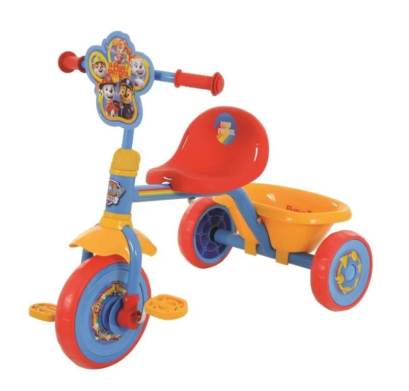 Get on the move with this super cool Paw Patrol trike featuring character favourites! Perfect for little ones finding their feet, this ride-on is not only designed for comfort with its moulded seat and soft handlebar grips, but safety also with wide, puncture-proof EVA tyres for stability and sturdy steel frame. A front mudguard prevents riders from getting too messy and protects from debris. The easy switch front wheel clutch mechanism allows kids to rest their feet on the pedals in parent push-along mode, whilst using the adjustable parent handle. The handle can be removed and pedals engaged once your child is ready to go it alone, improving confidence and coordination. Can be adjusted to growing children as confidence and ability improves with adjustable handlebar height of 50-53cm and a seat height of 32cm. The removable rear bucket is great for ride-along storage for all your favourites toys!
