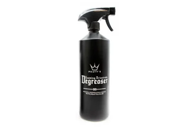 Steve Peat has never been afraid to put himself out there and his new line of products is no different. Peatys new Foaming Drivetrain Degreaser can help you get your chain and sprockets looking like new with very little effort. Spray your cassette with the biodegradable solution, moving your chain up and down the gears to penetrate the rollers and cogs. Leave it to agitate the grease and grime for two minutes then rinse off with clean water. Your drivetrain will come up impressively clean, ready for drying and the application of lubricant.. High strength foaming drivetrain degreaser