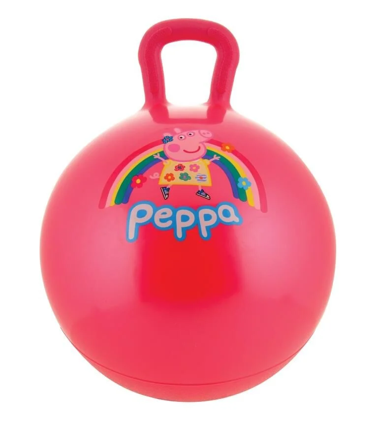 Let imagination, creative play and adventure follow you with the Peppa Hopper. Suitable from 3 years, this is the perfect toy for children as they start to explore imaginative play and independence. Decorated with character graphics, the hopper inflates quickly and easily to a full 40cm (16in) for any fan to immerse themselves in play (pump not included). Perfect for little hands, the handle features a soft moulded grip for both safety and protection, while the smooth sides are handy for stability. Play come rain or shine, indoors or outdoors all year round with durable PVC material and easy-wipe surface to get rid of any mud or dust. The Peppa hopper is a great toy that encourages the development of core-balance and coordination, perfect for young children. The whole product folds down to compact size for easy storage.