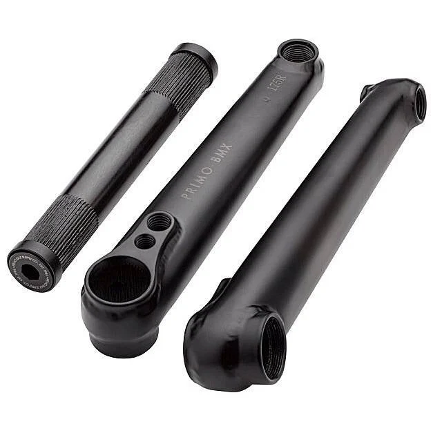 The Primo Pro cranks feature a 3 piece design with heat-treated chromoly crank arms that square off near the pedal bosses to prevent denting.