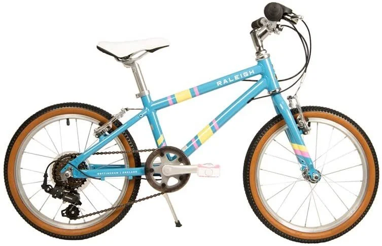Fun and sophisticated. The Pop 18 bridges the gap between younger and older childs bikes. The light blue frame pops with yellow and pink stripes and pairs this perfectly with mature black tanwall tyres.