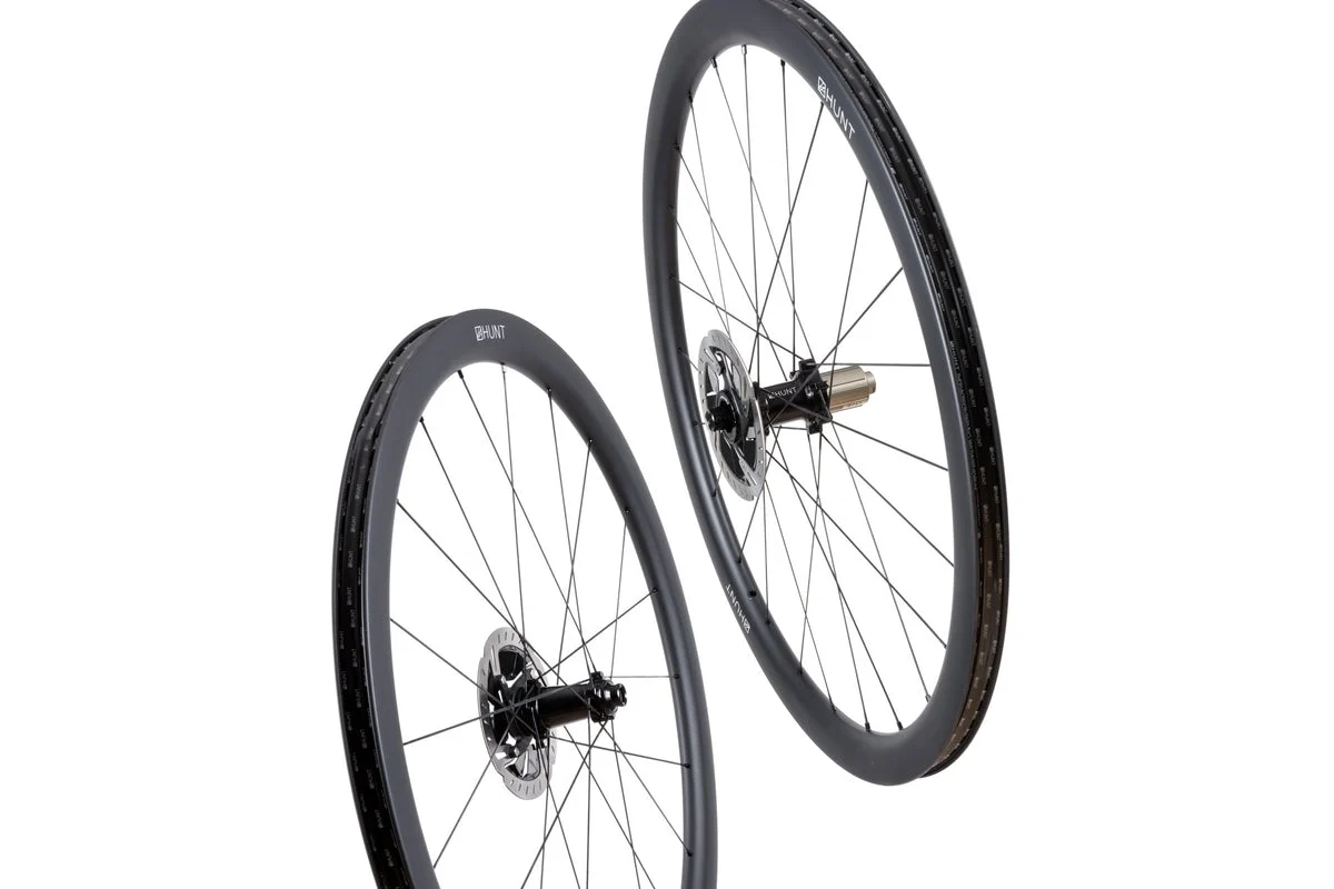 - Hunt Race Season Disc straight-pull super-light alloy.