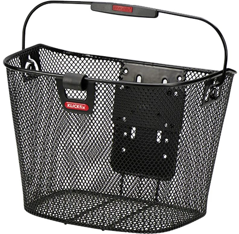 Rixen-Kaul: Most popular meshed basket with comfortable handle and coated surface. Classic high shape. The cylinder-shaped light holder allows you to mount common battery lights on the front side.The light clip clicks onto the front side of the basket rim. Thus even when the basket is full, the light will not be obstructed. Dimensions: 35x26x25cmCapacity: 16LWeight: 1kgMax load: 7kgAdditional KLICKfix handlebar bracket RKKF851 is required