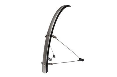 FRONT AND REAR FULL LENGTH UNIVERSAL MUDGUARD SETDESIGNED TO FIT 700×18 UP RO 700 X 23c WHEEL SIZESSTANDARD SIZE FOR MOST ROAD RACING STYLE CYCLESCOMPOSITE (FLEXIBLE PLASTIC) SO LIGHT BUT STRONG SUPPLIED WITH FITTING KIT AS SHOWN ( may not include bolts to attach to your bike as bikes vary )STAINLESS STEEL STAYS LIGHTWEIGHT YET TOUGH ENOUGH TO WITH STAND THE ODD KNOCK31mm WIDECOLOUR: SILVER PLASTIC WITH BLACK STRIPSWEIGHT: 568grams (approx)