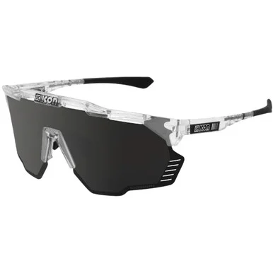 Tech Specs. Product Code: EY31080700. Frame Colour: Crystal Gloss. Lens Colour: Multimirror Silver. Weight: 36 g. Visible Light Transmission (VLT) in %: 12%. Lens Category: Category 3 (8% – 17% VLT). Material Composition – Frame: Grilamid TR90 – Lens: Polycarbonate. Lens Base: 6. Lens Shape: Cylindrical mask. Lens Height: 60 mm. Lens Type: Performance (SCN-PP). Lens Properties: Interchangeable lens, Mirror coating, Oleophobic coating, UV Protection. Gender: Unisex
