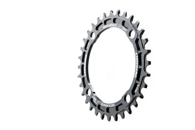 These chain rings use the official X-SYNC technology licensed from SRAM for unmatched chain retention. The unique high-precision tooth profile creates a reliable single-ring setup that reduces the chances of dropped chains, while simplifying and lightening the bike by doing away with front derailleurs and chain devices. Each tooth has a longer, squarer tooth profile to engage the chain earlier and drive for longer. Every second tooth is wider and features a crosshead profile that is chamfered at the tip. To be offered for 104, 94 and 74 BCD cranks and a direct mount option for SRAM cranks. CNC machined in Whistler.
