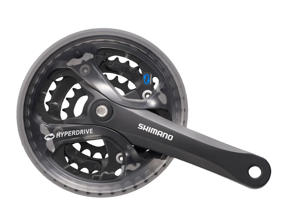 The Acera FC-M361 crankset for square taper bottom brackets features Hyperdrive chainrings for smooth gear changing. The crankset is Dual SIS compatible. Suitable for 7 or 8 speed drivetrains for use on MTB, hybrid or trekking bikes