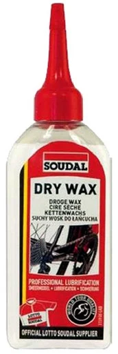 . Soudal Dry Wax (100ml bottle). Professional-grade chain lubricant. Wax based lubricant. Rust and corrosion-resistant. Dirt-repellent. Long lasting protection. Suits racing and mountain bikes. Use on bicycle chain, jockey wheels, cassette and chain ringsSpecifications. Packaging: 100 ml. Basis: Wax-based. Consistency: Liquid. Density: Ca. 1,02 g/ml. Acidity Level (text): Ca. 7.8. Application Temperature: 5 C – 30 C. Total Solid Content: 40 %Note: some values may vary depending on environmental factors such as temp