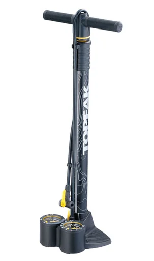 The Joeblow dualie floor pump was designed for the Fatbike and MTB tyres and tubes. The oversized barrel is 1.5 times the larger than a standard floor pump and allows you to fill oversized tyres with large volumes quickly. The dual gauges which give the pump its name, allows for fine tuning of low pressure tyres as well as going up to 75psi for higher pressures. Another great JoeBlow pump from Topeak.. Head: TwinHead / air release / button / X-Long hose. Barrel: Painted Steel. Gauge: 30 psi / 2 bar; 75 psi / 5 bar; Base mount analogue. Handle: Oversize Padded. Base: Composite. Added Features: Ball / bladder heads / Hose dock. Size (LxWxH): 69x23x17cm / 27.2×9.1×6.7inches. Weight: 1.9kg / 4.19lbs