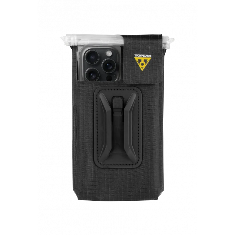 The Topeak Phone Drybag works with 6.9″ Screen Phones. With an enlarged camera opening to accommodate larger smartphone lenses