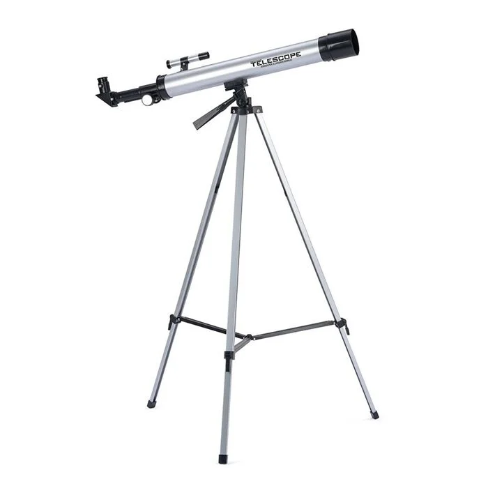 The telescope comes complete a sturdy aluminium tripod with a full 360° pivot, interchangable eye pieces (50x & 100x) so you can alter your view depending on distance, and a mirrored diagonal eye piece with 3x finder scope makes for easy use.