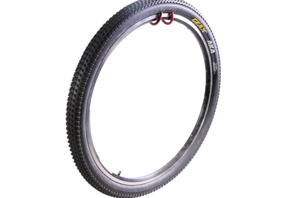 The Aka Mountain Bike Tyre from Geax is a directional race tyre with well-spaced, small-blocked pattern and Gato-derived side knobs for effective wet cornering.